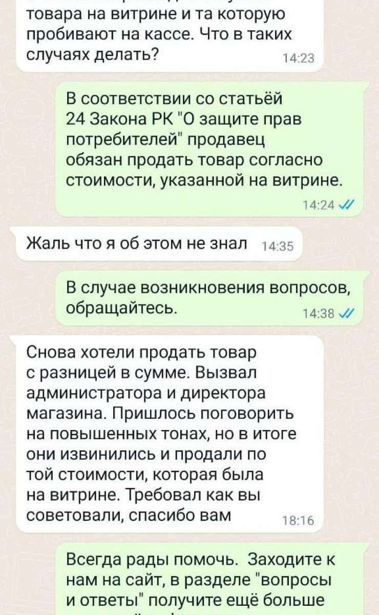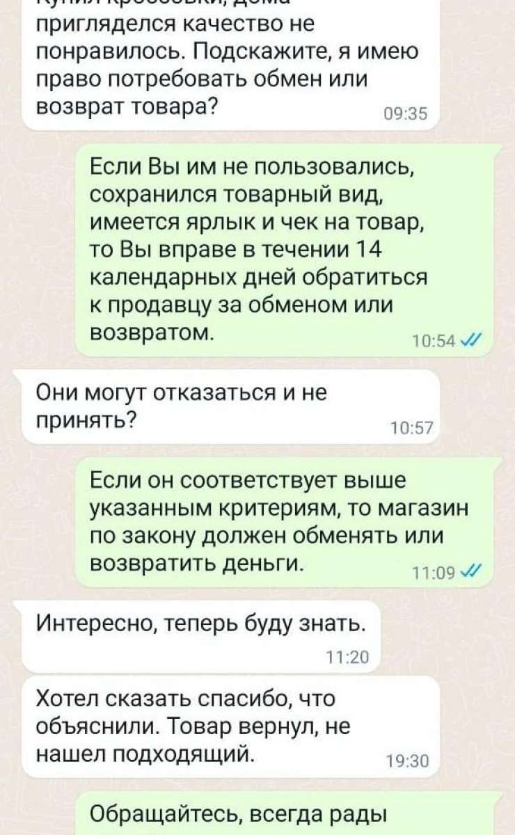 Каждый решённый вопрос - это шаг к образованности покупателей и добросовестности продавцов.