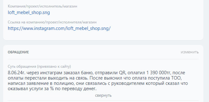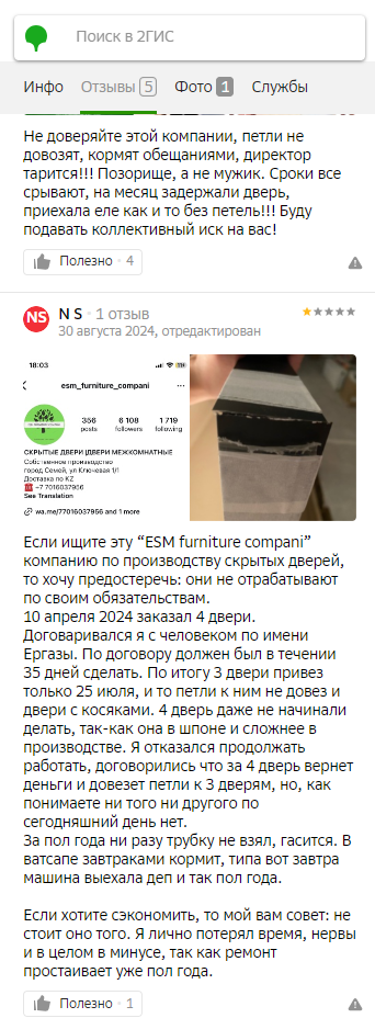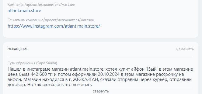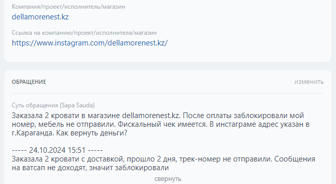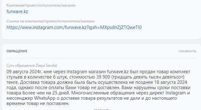 • Кроме аккаунта в Инстаграм у магазина есть сайт. Домен сайта магазина https://furwave.kz/ зарегистрирован в Алматы по улице, которая не существует (улицы Демесинова в Алматы нет), номер телефона не отвечает, гудки не идут.