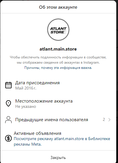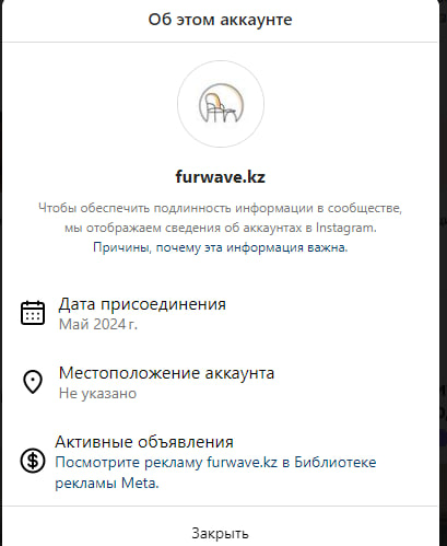 • Аккаунт в Инстаграм зарегистрирован в мае 2024 года, месторасположение аккаунта не указано.