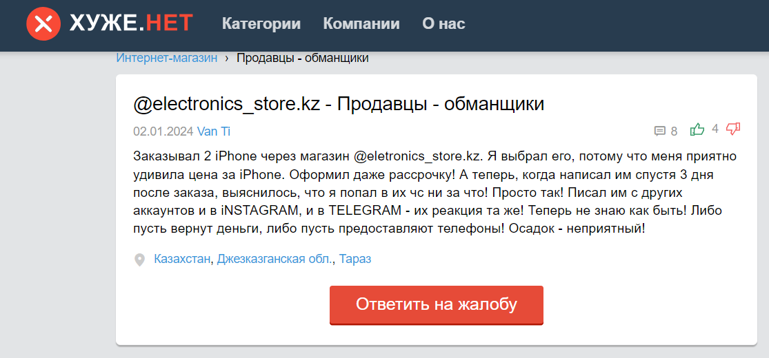 У данного интернет-продавца имеются признаки, недобросовестности.