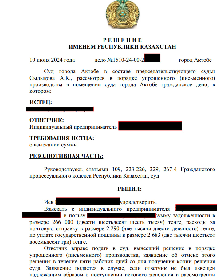 Имеются решения суда о взыскании суммы за непоставленный товар.