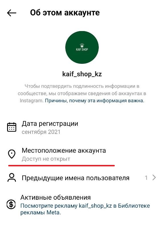 Местоположение аккаунта закрыто