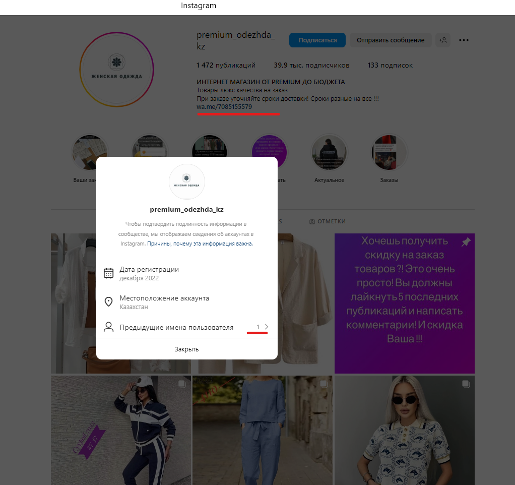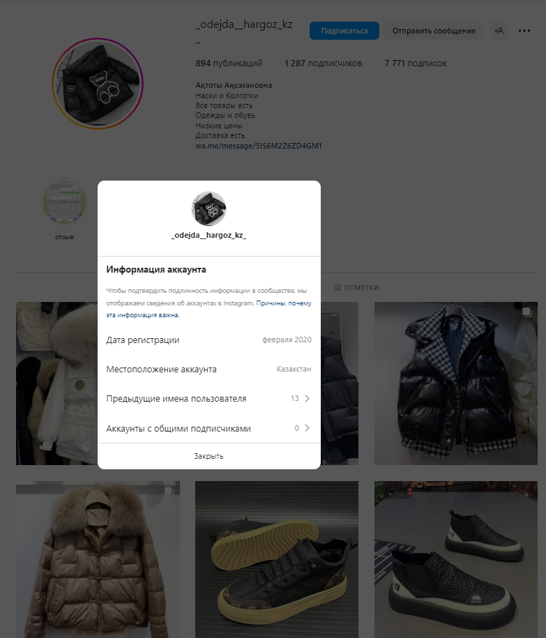 В настоящее время данный аккаунт удален либо переименован. В случае, если Вы обладаете информацией о новом наименовании аккаунта, напишите нам, мы обновим сведения о магазине. Видеоролик о проверке магазина можете посмотреть на нашей странице в инстаграме https://www.instagram.com/p/Cp15ztJDrOT/